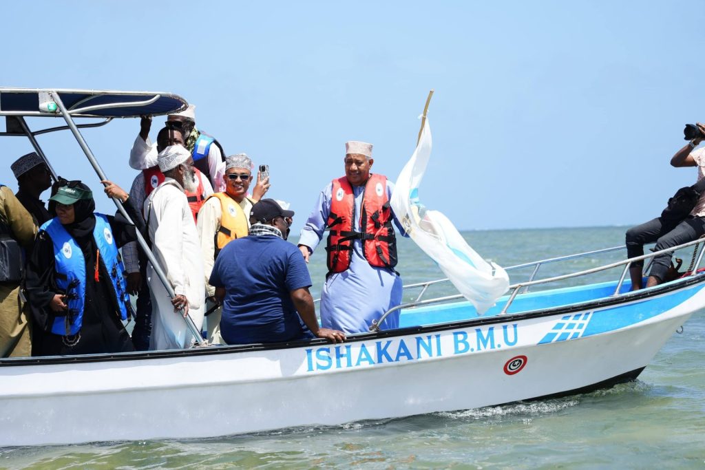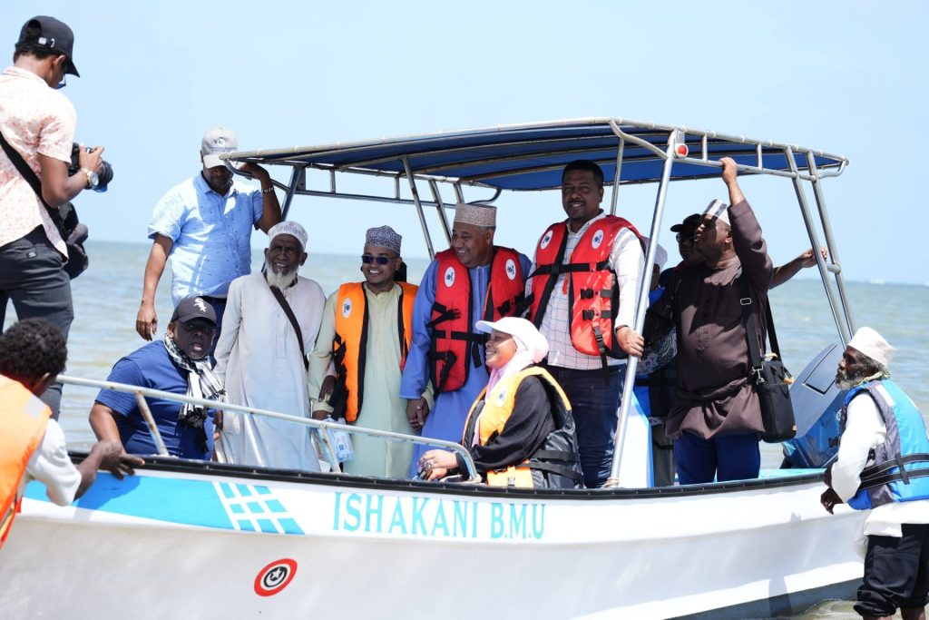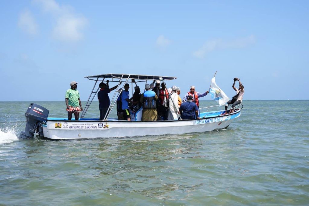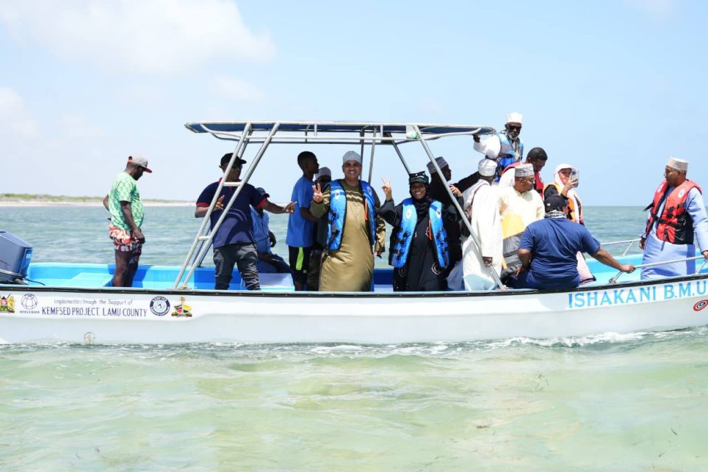 Lamu Governor H.E. Issa Timamy, EGH, on Friday officially launched a new boat at Ishakani Beach Management Unit (BMU), a project supported by KEMSFED through the World Bank and implemented by the County Government of Lamu. The initiative aims to boost local fishing activities, enhance livelihoods, and improve safety and efficiency for fishers in the region.